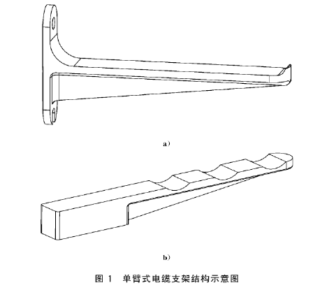2.1  按照單件制品的托臂數(shù)量分為單臂式和多臂式分別以字母S和M表示,單臂式電纜支架常見(jiàn)結(jié)構(gòu)型式如同1所示. 多臂式電纜支架常見(jiàn)結(jié)構(gòu)型式如同2所示,