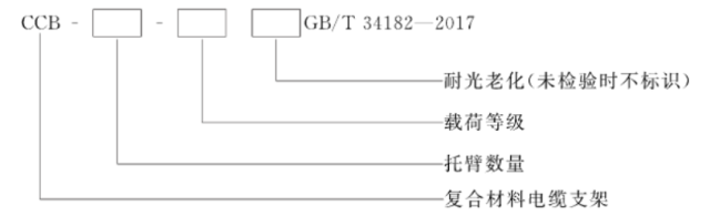 示例:托臂數(shù)最為多臂式、載荷等級(jí)為3級(jí)、耐光老化型.的電纜支架標(biāo)記為:CCB-M-3LGB/T34182-2017.