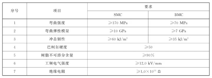 原材料應(yīng)采用以無(wú)堿玻璃纖維為增強(qiáng)材料的片狀模塑料(SMC)、團(tuán)狀模塑料(BMC)。